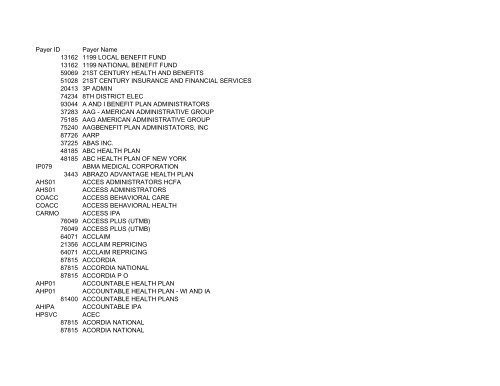 Professional Payer List 10 26 09